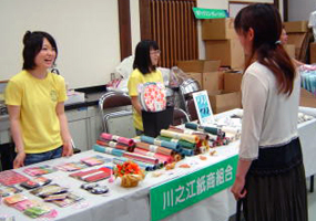 主力・お勧め商品/紙まつり販売商品 (和紙のくつ下、かかとエステしゃん、ランチョンマット他) 創立56年を迎える旧川之江市の紙及び紙製品の 加工・販売をしている事業所の組合です。 組合員相互の繁栄と親睦を図ると共に 地域社会に貢献することを目的とし、 紙まつり等の地域の行事に例年積極的に参加しています。 |